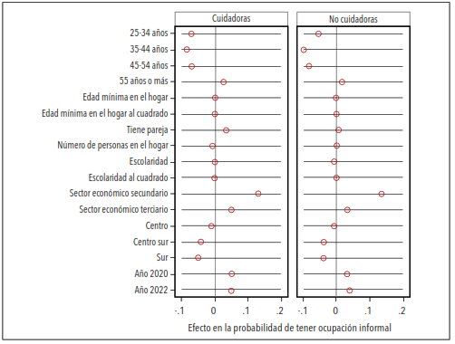 Figura 6 Factores asociados a la probabilidad de informalidad de mujeres, según responsabilidades de cuidado