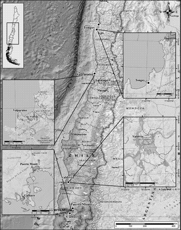La investigación en la que se basa este artículo es de tipo etnográfica y se llevó a cabo en cinco mercados costeros de lugar (MCL) emplazados en zonas bordemarinas con alta incidencia comparativa de desembarques de pesca artesanal. Los mercados en cuestión se encuentran ubicados en las regiones Los Lagos, Los Ríos, Valparaíso y Coquimbo, territorios de notable tradición pesquera. El concepto de bordemar ha sido planteado en estudios sobre los litorales chilenos de mar interior -en especial Chiloé- y se trata de aquel espacio donde confluyen los ecosistemas marinos y terrestres. Particularmente hace referencia a la apropiación cultural del intermareal (Mansilla y Rojas 2007) y más ampliamente a toda la franja marino-costera. Se propone el uso de este concepto pues define en esa confluencia un continuo de vida económico-cultural.