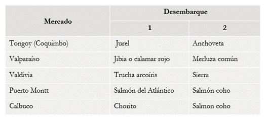 La segunda pregunta indagaba sobre el tipo particular de productos o alimentos típicos de esos mercados y las respuestas aluden especialmente a la pesquería más “conocida” de “la zona” y que suele ser abundante en ese ecosistema marino. En la tabla 3 se presentan los productos que alcanzaron mayores menciones típicas en cada uno de los mercados, además del nombre común y el científico.