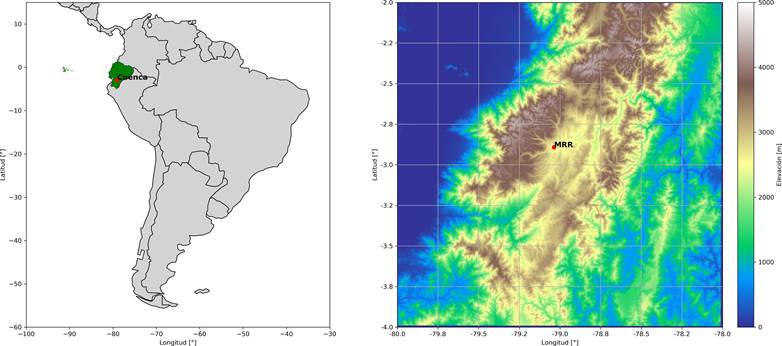 El estudio se realizó con datos tomados en el Observatorio Meteorológico Balzay (2◦53’32” S, 79◦02’10” W), el cual se ubica a 2600 msnm en los Andes de Ecuador en la ciudad de Cuenca (Figura 1). La zona tiene un régimen bimodal de precipitación con meses lluviosos en Marzo-Abril y Octubre-Noviembre (, ).
