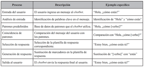 Tabla 1 Funcionamiento de la coincidencia de patrones en chatbots