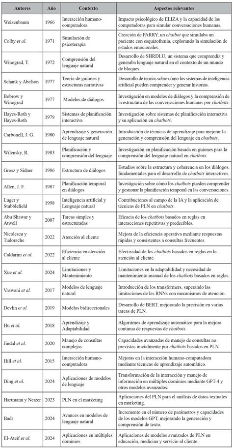 Por su parte, Caldarini et al. (2022) revisaron los avances recientes en chatbots, destacando que, aunque los chatbots basados en reglas son limitados en su capacidad para manejar conversaciones complejas, siguen siendo valiosos para tareas específicas y bien definidas en el servicio al cliente. Estos sistemas son menos costosos y más fáciles de implementar en comparación con los chatbots basados en modelos de lenguaje, lo que los hace una opción viable para muchas empresas.