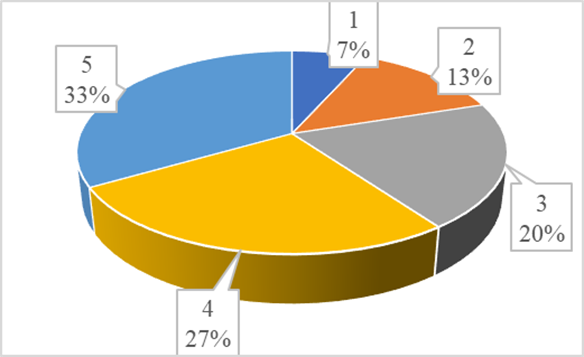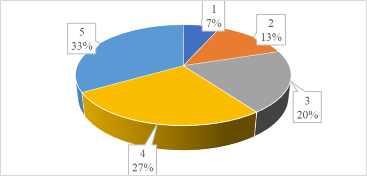 This analysis presents a proposal for measuring the interest of the population in participating in activities aimed at the preservation and recognition of monuments. The evaluation scale, ranging from 1 to 5, reflects a range of interest, where 5 indicates a high level of interest and 1 denotes lack of interest. The distribution of the results reveals an ascending pattern, showing that 33% of the respondents expressed a strong interest (score 5), followed by 27% with a score of 4. Also, 20% indicated moderate interest (score 3), 13% showed a low level of interest (score 2), and 7% expressed a significant lack of interest (score 1).