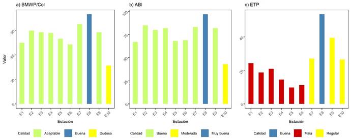 Fuente: Índice BMWP/Col basado en (22); Índice ABI según (20); Índice ETP basado en (18).