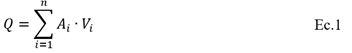 Vi = Velocidad media i-enésima del agua, en m/s.