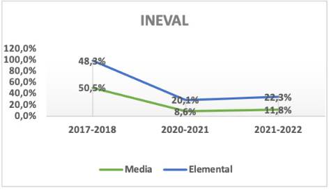 Los datos proporcionados por el INEVAL de sus evaluaciones a Lengua y Literatura en EGB en sus dos primeros subniveles (Elemental y Media) en un periodo de 5 años, entre el 2017 y el 2022, mostró una disminución en el porcentaje de alumnos que no alcanzaron un nivel de competencia lectora elemental. Al respecto, los datos del periodo 2021-2022 mostraron que en Básica Elemental disminuyó un 20% (de 51,7% a 77,7% Figura 5) y en la Básica Media un 38% (pasando de 49,5% a 88,2% Figura 6). En base a estos resultados, se observó que en los grados superiores mejoró el nivel de desempeño de los estudiantes en esta área; de esta forma, ha sido innegable los datos positivos y que el último grado de la Básica Media casi rayó en la perfección, lo cual generó inquietudes.
