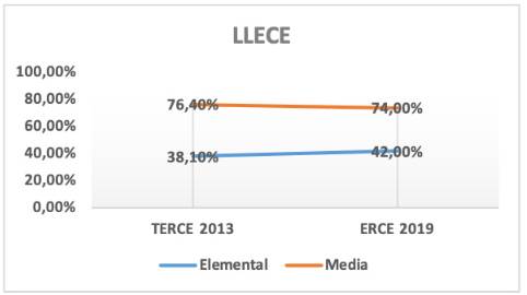 Así mismo, la UNESCO (2022) mostró datos de la evaluación ERCE (2019) sobre los niveles de aprendizaje en lectura proporcionados por el LLECE. Con base en los resultados de esta evolución en el área de Lenguaje, se ha podido señalar que esta mantuvo su valoración sobre los dominios y procesos, en la lectura y la escritura, igual que la evaluación TERCE (2013).