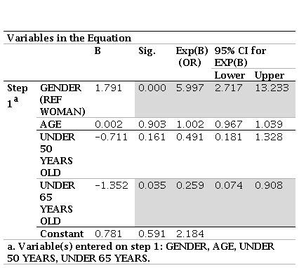 | GENDER (REF WOMAN) | -0.741 | 0.045 | 0.477 | 0.231 | 0.983 | |