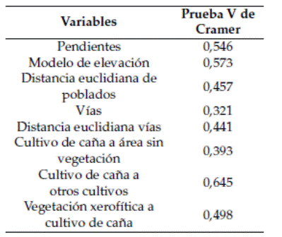 Una vez establecido el submodelo, se aplicó la prueba V de Cramer a las variables estáticas y dinámicas que se crearon previamente. Esta prueba sirve para medir la forma en la que están asociadas dos categorías y permitió calcular la relación entre las variables de acuerdo con su efecto (Tabla 3).