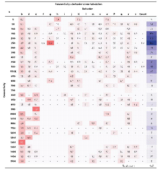 Table 8: The cross-tabulation indicating the percentage of behaviors within each C value (0.00 represents the percentages between 0-0.05).