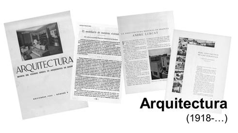 Figure 2 Collage of cover and first pages of articles from the journal Arquitectura.