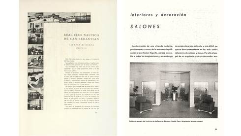 From the Exposition of Decorative Arts in Paris in 1925 until the outbreak of the Civil War, during which a large part of these journals disappeared, periodical publications adopted an increasingly interested attitude towards interior themes and their furnishings, which was unusual in earlier times. Almost all of them devoted some of their pages to studying the spaces created by architects and their spatial arrangements. Some of them, such as the journal Arquitectura, A.C. or Nuevas Formas, presented these types of projects to the public like any other architectural project. In others, like Cortijos y Rascacielos, Viviendas, or Obras, however, the publication dedicated a section exclusively to furniture and interior design, as will be seen later on.