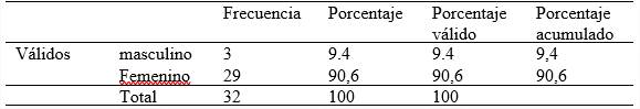 A continuación, se muestra el cuadro 2, donde se resume el total de la muestra clasificada por género, frecuencia y porcentaje de participantes masculinos y femeninos.