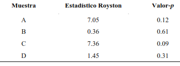 El valor p asociado a r se utilizó para decidir si la correlación observada podría atribuirse al azar. Un valor-p ≤ 0.05 indica que la relación lineal es significativa. Una vez determinada la correlación, se procedió a evaluar la distribución de los datos mediante una prueba de normalidad. Este paso es fundamental para determinar si los datos multidimensionales pueden proceder razonablemente de una distribución normal, lo cual influye en la elección entre un análisis estadístico paramétrico o no paramétrico. Para ello, se utilizó la prueba de Royston, especialmente adecuada para muestras grandes (Fernández, 2011), formulándose las siguientes hipótesis:
