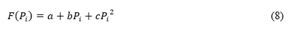 Por tanto, la función objetivo a minimizar se muestra en la Ecuación (7), donde F es la tasa de costo de cada generador que entrega una potencia Pi.