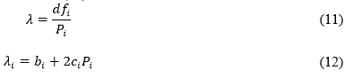 se caracteriza de acuerdo con la Ecuación (11) y corresponde a la derivada de la función de costo respecto a la potencia de salida de cada unidad de generación P