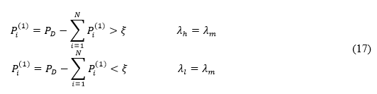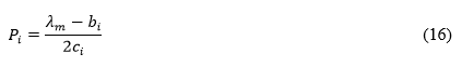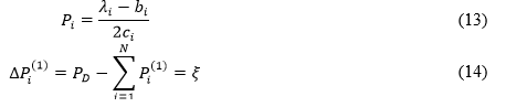 De la Ecuación (12), se obtiene la potencia de generación P i mostrado en la Ecuación (13) y se calcula la variación de la potencia de cada unidad, como se expresa en la Ecuación (14).