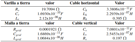 Tabla 4 Los equivalentes eléctricos de varilla y malla para determinar los resultados