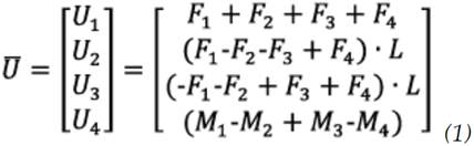 , which determines the connection between the electric drives and the quadcopter platform, can be written in the following way (Eq. 1) [11],[12],[17]: