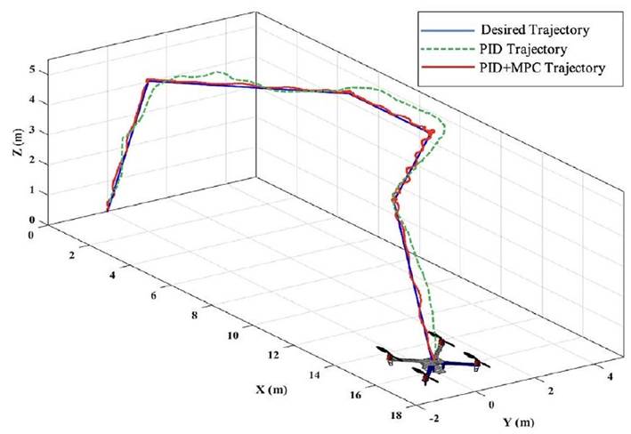 In figure 11 is presented a comparative analysis between PID and Adaptive PID based MPC control system capabilities in terms of stabilization and positioning accuracy properties during open loop trajectory pattern.