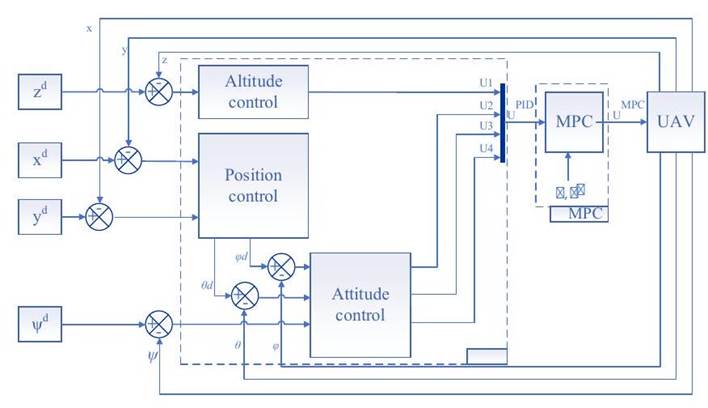 using a robust MPC controller [2], [14], [23], [24]. Moreover, the adaptation of controller parameters aims to overcome the PID algorithm limitations implementing an online tunning method given by MPC algorithm, which leads to lower complexity and computations. In figure 4, the internal structure of the decision-making block is presented. According to this diagram, two control loops based on the use of the PID controller are distinguished: an external loop for controlling the