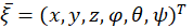 - vector of linear and angular velocities of the center of mass of the UAV,