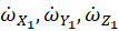 projections of linear and angular accelerations of the quadcopter center of mass on the axes