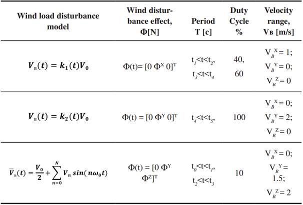In addition, wind disturbances can be considered deterministic or random processes that repeat after a certain period (periodic or non-periodic) or occur at a specific time interval (pulse signal). In this work, both mentioned random models are considered.