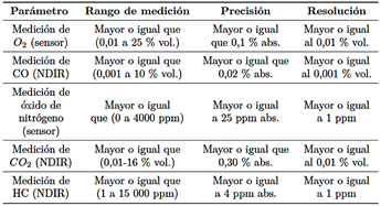 Tabla 4 Especificaciones técnicas del sistema de medición de emisiones Axion OEM-2100AX
