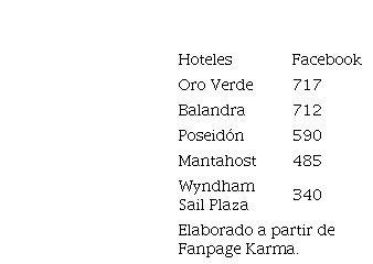 El hotel Poseidón presenta el número más alto en generación que evidencian sus seguidores en las publicaciones de Facebook con 324 comentarios, esto representa un 27 % más aportaciones de sus seguidores que el segundo en este orden, ocupado por el hotel Oro Verde, con 255 comentarios (Tabla 5).