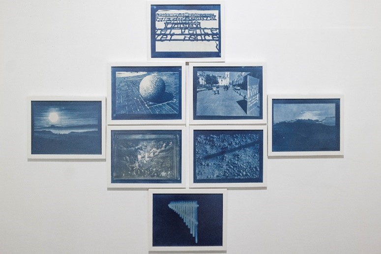 Estas reflexiones articulan también la serie de cianotipos que se recogen bajo el nombre de Recorridos de Luz y Sombra (2013-2023), realizada en Quito a lo largo de diez años, durante el solsticio del mes de junio, al amanecer y al atardecer (Figura 1). El sol sale sobre el volcán Cayambe y cae en el ocaso hacia la parte norte del Pichincha, ambas entidades sagradas según la cosmovisión andina. Durante este periodo, Macas caminó por estos ejes marcados por la luz en el centro de la ciudad y produjo una serie de imágenes reveladas al año siguiente, con la misma luz y posición solar.