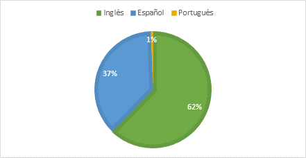 La productividad de trabajos por idiomas puede variar significativamente dependiendo del campo de investigación y de la audiencia a la que se dirige el trabajo. Para el caso de la investigación se decisión determinar los idiomas en los que es posible encontrar información académica respecto al tema estudiado en específico, y el porcentaje respecto a la totalidad. En la figura 6 se muestra la distribución de los trabajos en porcentaje para esta categoría: