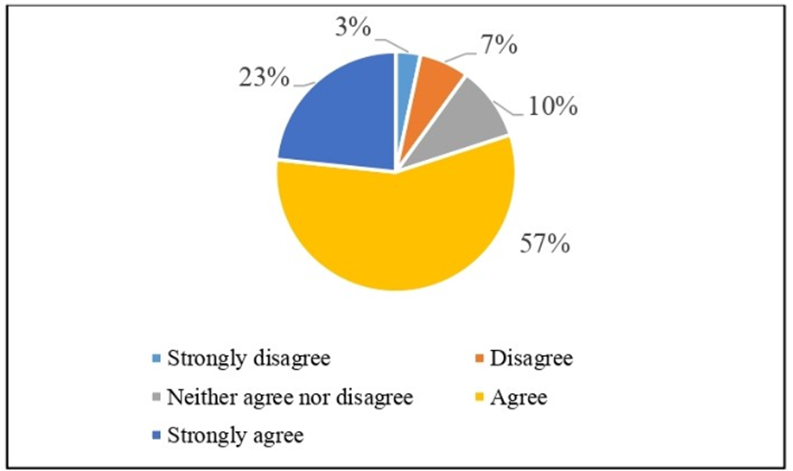 Ninety-three percent of the respondents considered the use of digital tools for learning to be useful or very useful (Figure 3), and consequently, 80% of the participants expressed that they would agree or strongly agree to participate in a strategy that uses ExeLearning to improve their pedagogical skills (Figure 4).