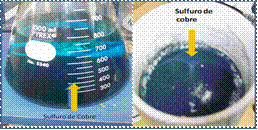 Al sistema generador de sulfuro de hidrógeno se le anexó una trampa que contiene una solución de sulfato de cobre 0,1 M. Por lo tanto, el sulfuro de hidrógeno producido reacciona con el sulfato de cobre, formando un sólido azul oscuro (sulfuro de cobre) (Fig. 2). El producto se filtró al vacío y se dejó secar por 24 horas a 90 °C. Luego se pesó y se determinó la concentración de sulfuro de Hidrógeno.