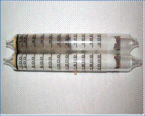 El sistema de medición colorimétrico está compuesto por un tubo Dräger y una bomba de detección de gases marca Accuro modelo ARAA-F001 (Fig. 3). Cada tubo Dräger contiene un sistema de reacción altamente sensible. Estas exigencias están fijadas tanto en normas internacionales como nacionales sobre tubos de medición.