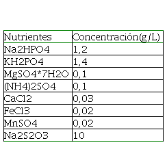 Tabla 1 Nutrientes adicionados para el crecimiento de bacterias oxidantes de sulfuro de hidrógeno