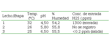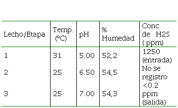 Está demostrado que el sulfuro de hidrógeno se puede remover utilizando compost, sin embargo, sería recomendable hacer pruebas con otros mate riales orgánicos para analizar las distintas características y duración de los lechos.