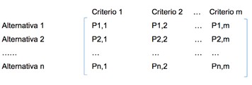 Luego se establece la matriz de prioridades (fig. 1), para lo cual, se resume las prioridades por cada alternativa, en términos de cada criterio, para lo cual (m = criterios), y; (n = alternativas), la matriz sería de la figura 2: