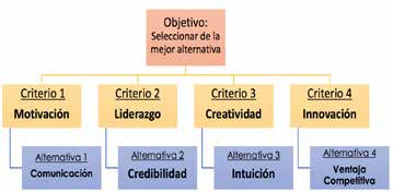 Para conseguir nuestro objetivo, hemos entrevistado a 186 Gerentes de empresas públicas y privadas dicha encuesta, nos ha permitido determinar los criterios más significativos que interviene en la toma de decisiones los mismos que identificamos a continuación: i) Liderazgo, ii) Motivación, iii)Creatividad, e, iv) Innovación. De estos cuatro criterios que nos han evidenciado las encuestas dentro del diagnóstico, pretendemos demostrar aplicando el modelo AHP, cuál de estos criterios y alternativas, son significativas o dicho de otra manera, cuál de los mencionados criterios y alternativas, vamos a seleccionar, para lo cual el modelo nos permite considerar de una manera jerárquica dentro de las decisiones gerenciales en épocas de crisis y cuando se presentan conflictos dentro de las empresas, o para la elección dentro de la toma de decisiones, elegir el mejor resultado.