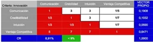 Tabla 10 Alternativa Credibilidad en función del criterio Innovación