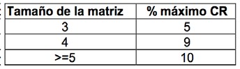 Tercero, determinamos la consistencia de la matriz, mediante un ratio de consistencia que tiene la siguiente escala (tabla 3):