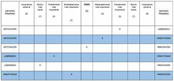 Criterio Creatividad Alternativa Intuición (tabla 9)