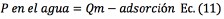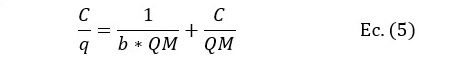 Donde QM es la cantidad de adsorbato (mg) por peso unitario de adsorbente (g); b es la constante de equilibrio de Langmuir (L/mg) (Pérez, 2002).