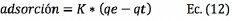 En este estudio, se enfatizó el uso de las isotermas de Langmuir y Freundlich. La primera explica una adsorción en monocapa mientras que la segunda en multicapa. La isoterma de Freundlich se expresa de la siguiente forma: (Ec. 4)