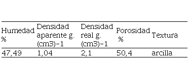 Los suelos fueron muestreados acorde a la norma mexica NOM-021-SEMARNAT-2000 de la Secretaria de Medio Ambiente y Recursos Naturales (SEMARNAT, 2002), a partir de los resultados obtenidos por (Calvopiña y Vilela, 2017) donde establecen la aptitud de los suelos para retener fósforo mediante propiedades físicas y químicas de los perfiles muestreados, el perfil seleccionado fue el M16. Los parámetros químicos medidos en los laboratorios de Agrocalidad (Agencia Ecuatoriana de Aseguramiento de la Calidad del Agro) fueron: cantidad de fósforo, aluminio, capacidad de intercambio catiónico (CIC), acidez intercambiable y retención de fósforo cuyos valores se muestran en la tabla 1, de igual forma la tabla 2 presenta los valores obtenidos para las propiedades física del perfil seleccionado.