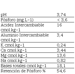 Cabe destacar que los suelos ácidos, aproximadamente desde pH 6,5 permite el rompimiento de la estructura de los minerales arcillosos y en consecuencia, se libera Al y Fe que reaccionan con el fósforo y se precipita como fosfatos insolubles, como mencionan Sanguino (1961) y Ramírez, Rendón, Acevedo (2011), lo cual concuerda con el trabajo de (Sanyal, De Datta y Chan, 1993) quienes mencionan que, en suelos con pH bajos la adsorción máxima de fósforo se correlaciona con la presencia de minerales de arcillas donde el hierro y aluminio son altas. En este caso se puede inferir que, el pH del suelo bajo estudio tiene una gran significancia en el resultado de la adsorción final de fosfatos.