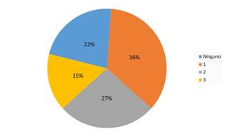 Figura 2 Frecuencia de factores de riesgo cardiovascular en el grupo de pacientes jóvenes con 50 años y menos. *Factores de riesgo cardiovascular considerados: Hipertensión arterial, Dislipidemia, Diabetes Mellitus, Consumo de alcohol, Hábito de Fumar, Ictus isquémico previo, Cardiopatía embolígena.