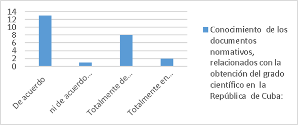 Gráfico 1ª Conocimiento de los documentos normativos, relacionados con la obtención del grado científico en la República de Cuba
