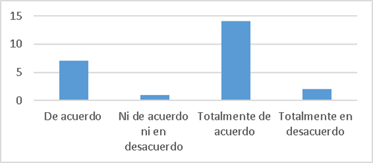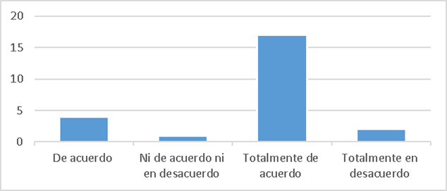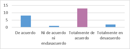 En cuanto al nivel de satisfacción con la formación recibida, se incluyeron dos ítems relacionados con la pertinencia y la motivación. En los dos ítems muestran un alto por ciento las respuestas favorables, lo que se corresponde con las dimensiones anteriores: 87,55 (“Totalmente de acuerdo” y “De acuerdo”) en cada caso, lo que confirma la idea de que este nivel está asociado al éxito en la labor que desempeñan y a alta motivación por la actividad que realizan en la cual se aprecia el impacto favorable de la formación doctoral.