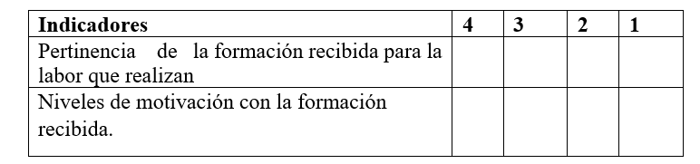 Por último, en lo referido al nivel de satisfacción las respuestas se refieren a la socialización entre los miembros del claustro o de líneas los avances de investigación que se vayan presentando por los doctorandos en cada taller, promover de manera intencionada los estudios posdoctorales, así como el seguimiento a la introducción de resultados científicos.